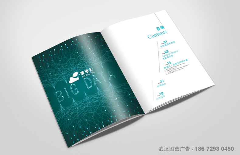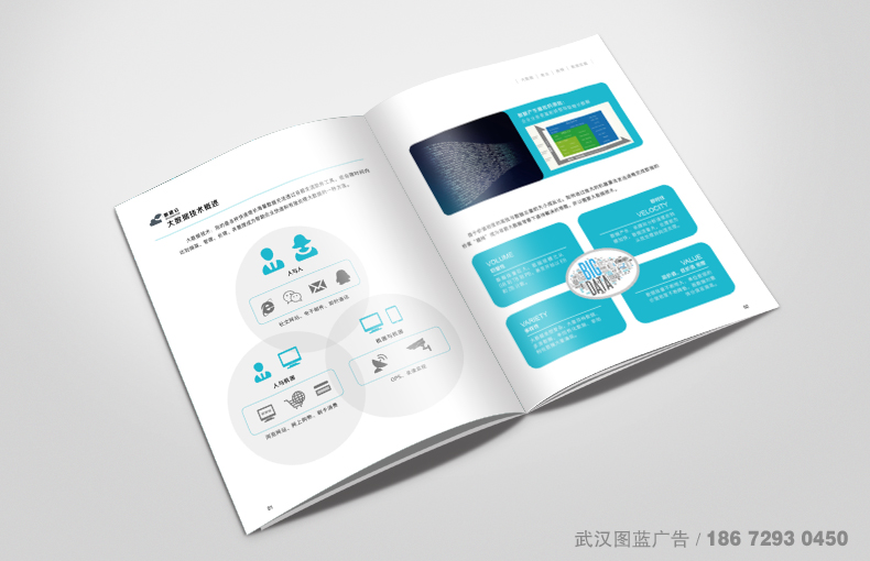 畫冊設計解決方案:整本產品畫冊的設計以藍綠色為主色調,顯得年輕而有活力,畫冊采用200x250mm的尺寸設計,通過簡潔的版式設計,中間穿插一些有代表性的設計素材圖片,產品特點多以圖形圖表設計表現出來,直觀而又形象。畫冊的封面以數據、云為設計元素,LOGO做UV工藝,整本畫冊設計精致而簡潔大氣。