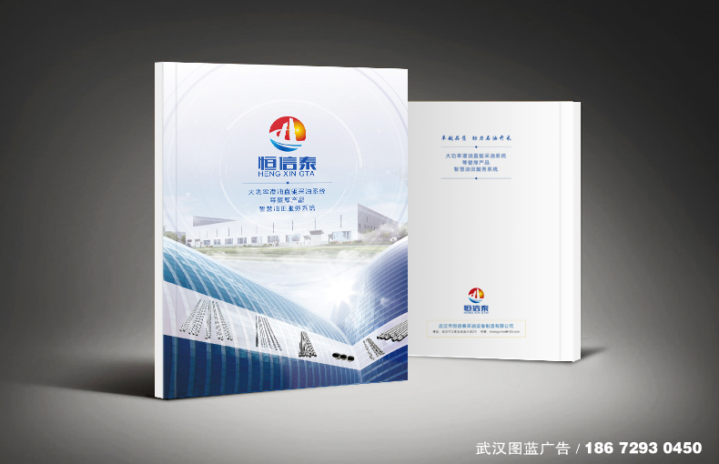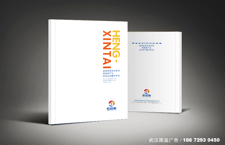 畫冊設計解決方案:畫冊的封面以公司新廠房為背景設計,將公司產品做V字形排列放于畫冊封面的下方,LOGO放于封面的正中間,整個畫冊的封面設計既體現了公司產品,又突出了工廠實力,中置LOGO的設計讓畫冊封面顯得正規嚴謹。畫冊的內頁從“企業篇、產品篇、市場篇”三個部分來設計,將“恒信泰公司”的實力生動形象的展現出來。畫冊以深藍為主色調設計,版式設計簡潔大氣。