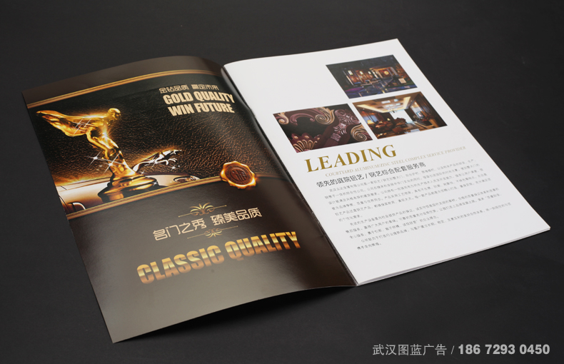 ◆解決方案:整本產(chǎn)品畫冊的設(shè)計以暗金色為主色調(diào),封面為暗金色的設(shè)計,LOOG及Slogan采用燙亮銀工藝,顯得簡潔而有檔次,畫冊采用240x340mm的豎版設(shè)計,個性而大氣。