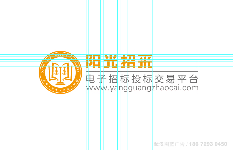 LOGO設計解決方案:武漢圖藍廣告整合了“陽光招采”的品牌訴求,結合市場現狀的分析調查和陽光招采“公平、公正、公開”的品牌內涵,LOGO決定以以天平、書為設計元素。